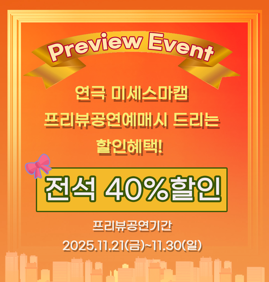 🎀 프리뷰 공연 기간 한정! 전석 40% 할인은 11월 21일~30일까지만 적용되니 서두르세요!